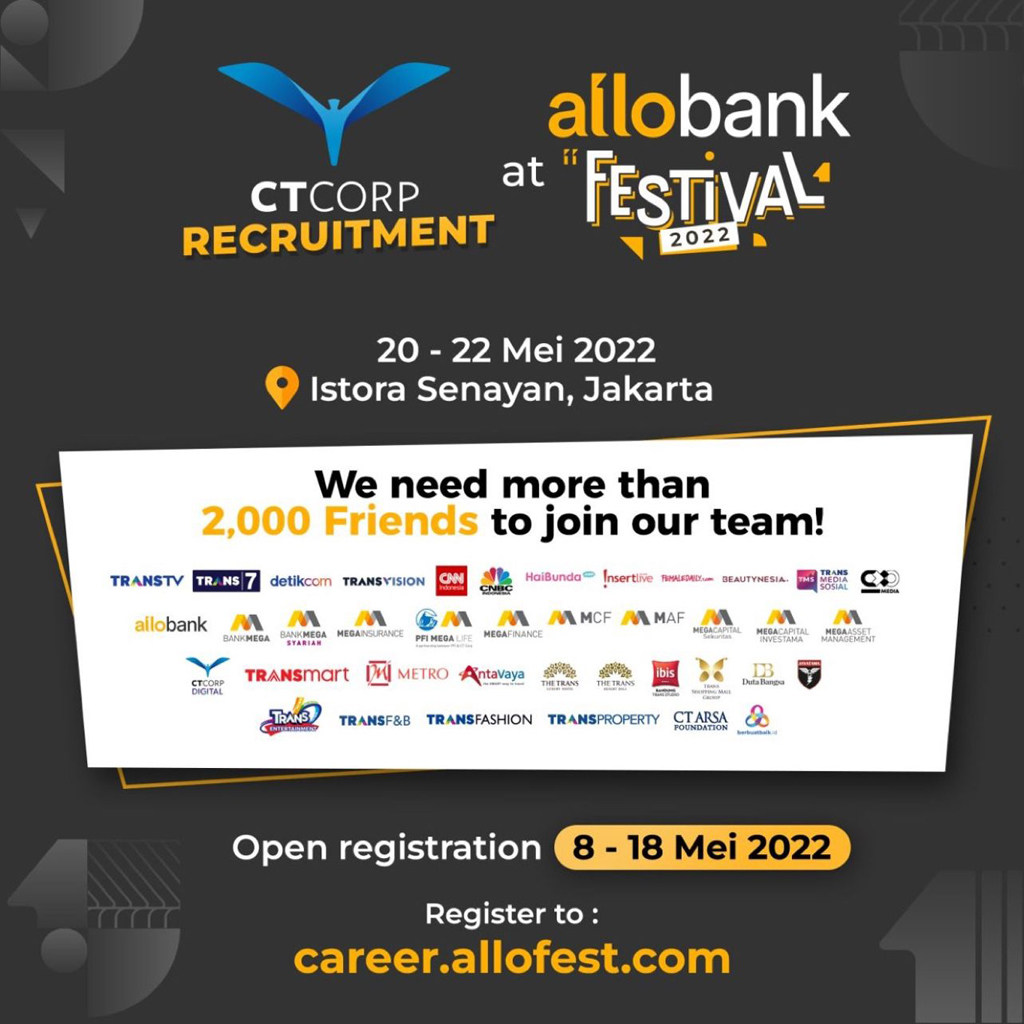 CT Corp Recruitment akan diadakan pada 20-22 Mei 2022 bersamaan dengan ALLO BANK FESTIVAL 2022 di